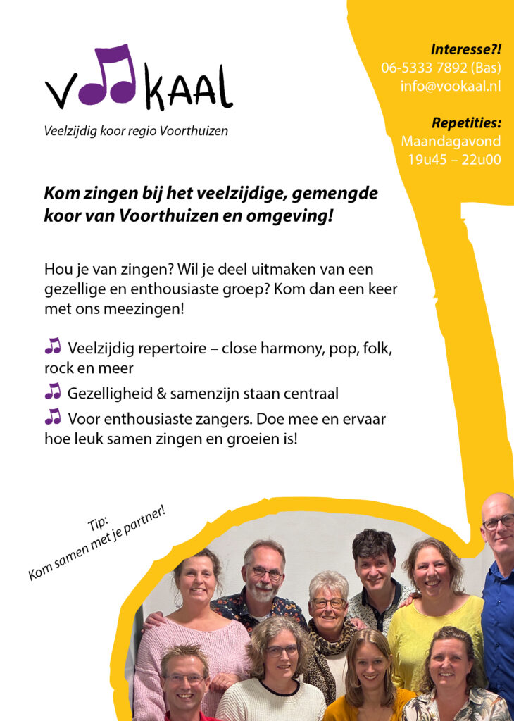 Welkom op de site van VooKaal, een nieuw gestart koor in de regio Voorthuizen.
